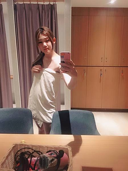進更衣室換衣服摟,基本上他們只會給你一件紙丁字褲,包著浴巾