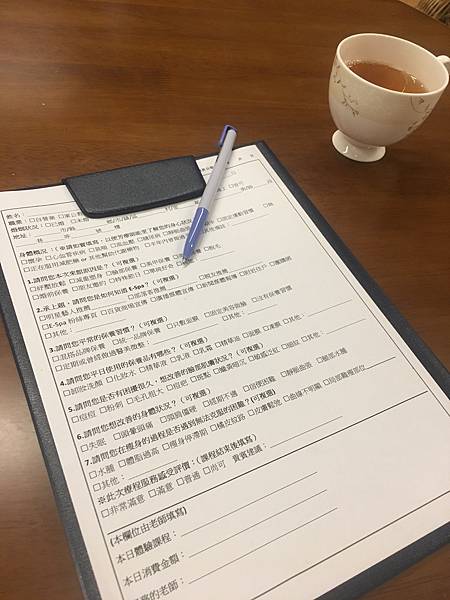 在等芳療師的時候會在這寬敞的詢問位置上填寫單子